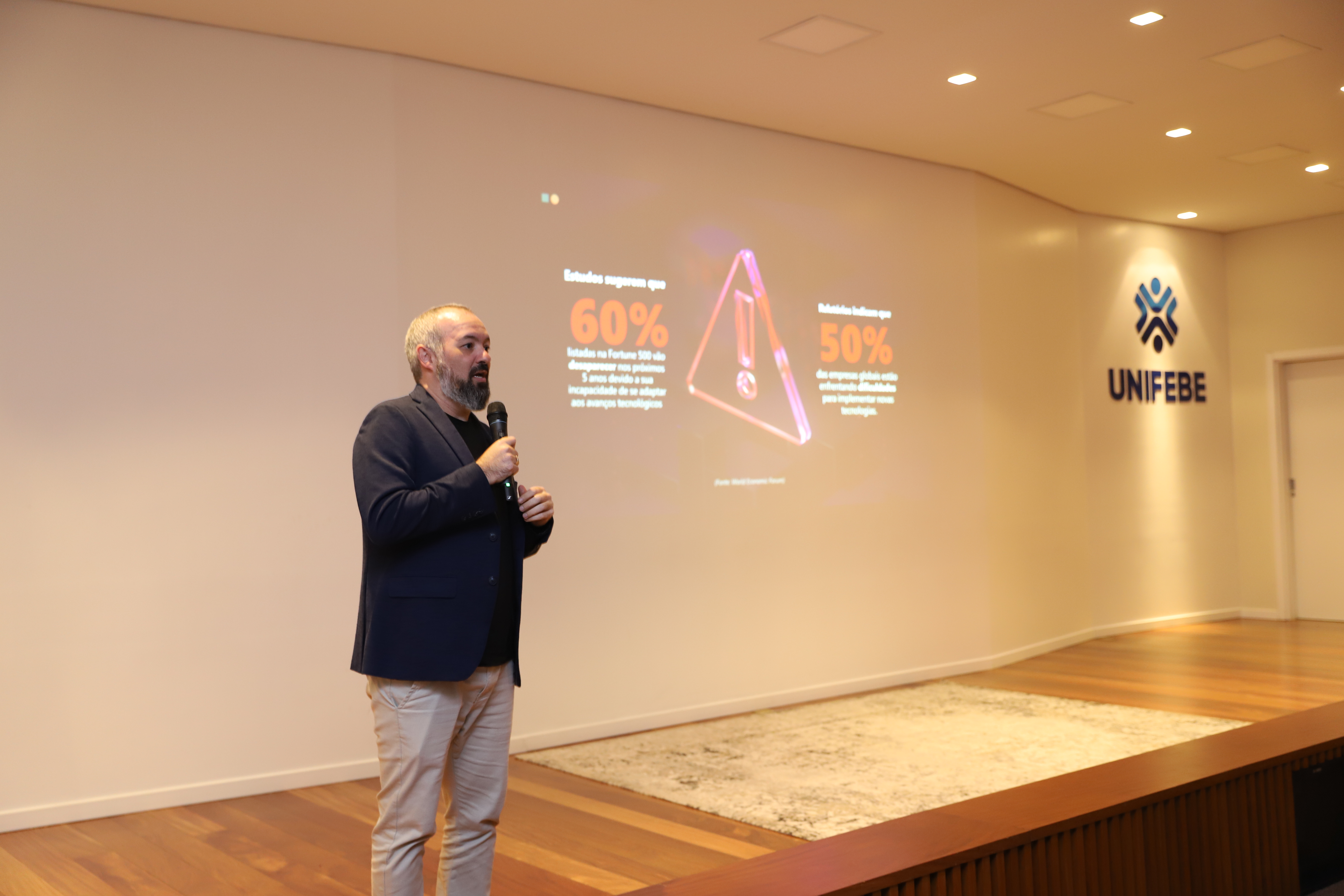 Entre a tecnologia e a realidade, do que o mercado realmente precisa? Essa foi a questão central do bate-papo realizado entre o gerente de produtos digitais da Selbetti Tecnologia, Rodrigo Gomes, e os acadêmicos de Sistemas de Informação da UNIFEBE.
