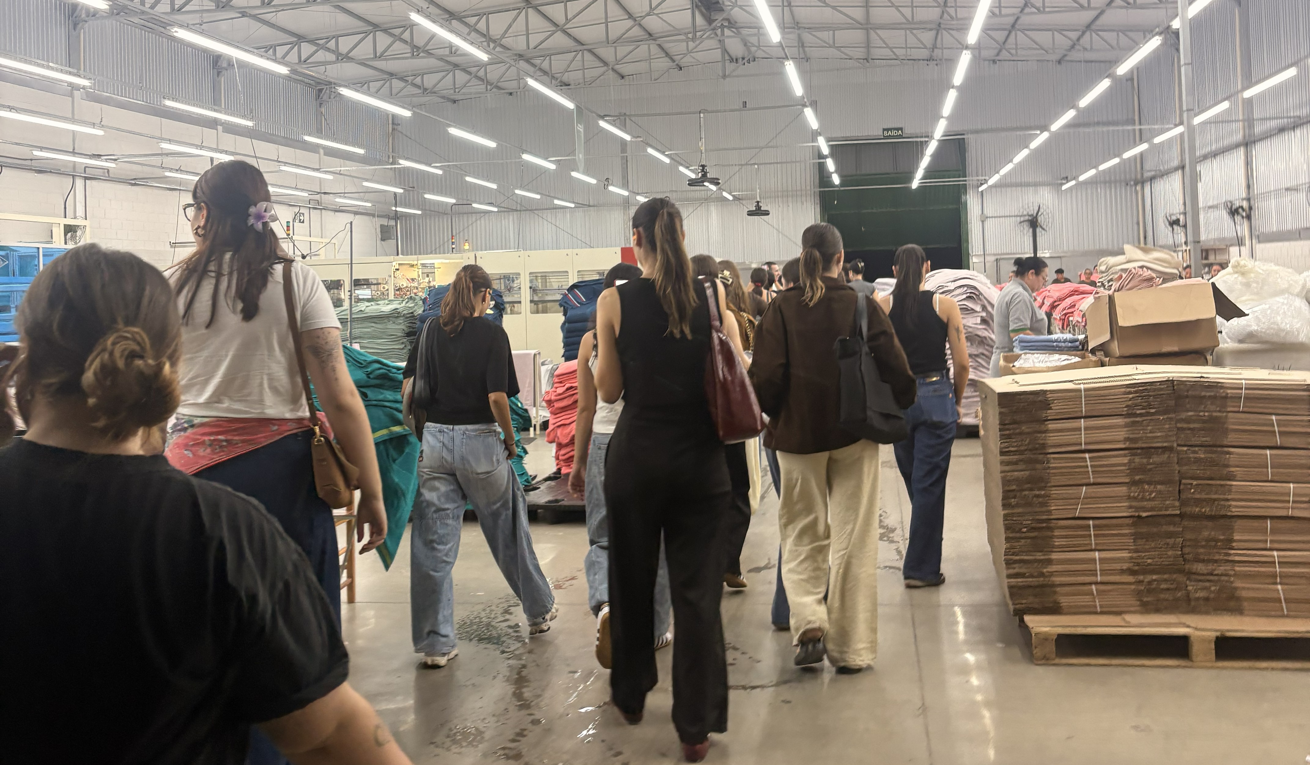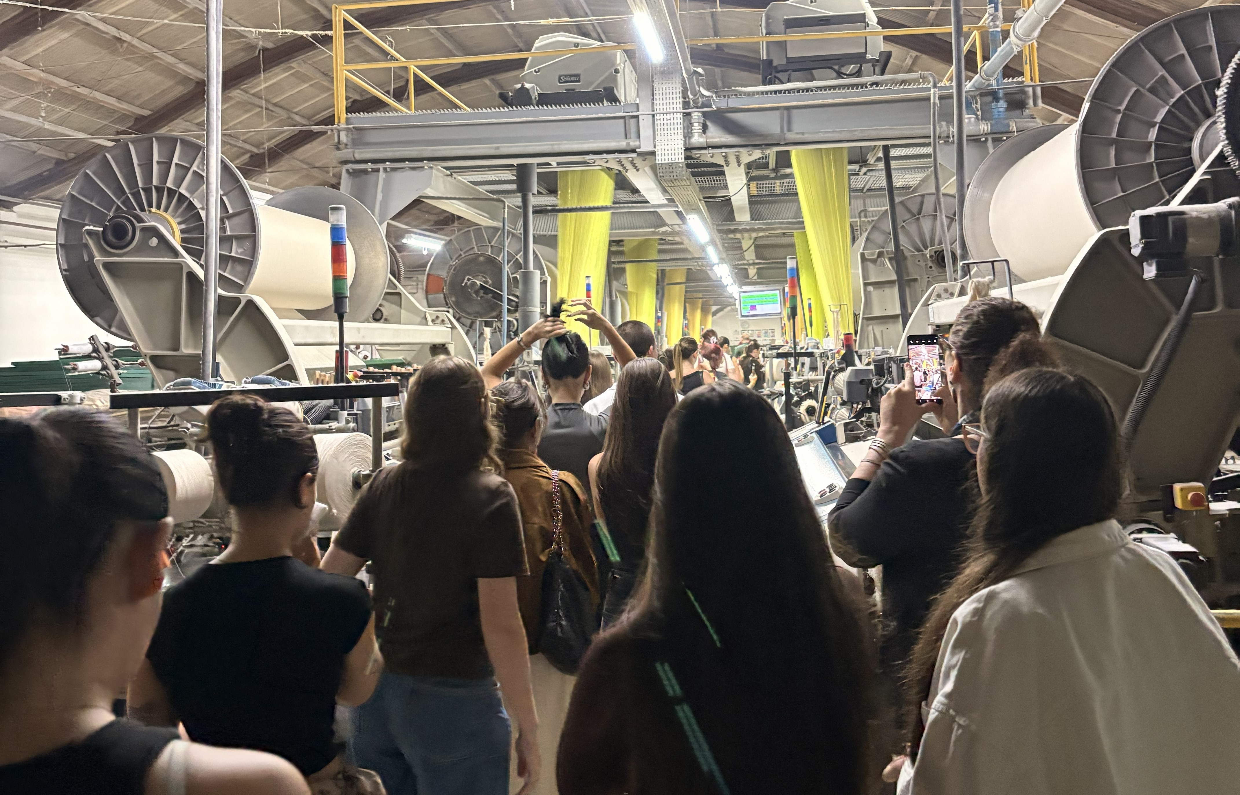 Na EVA Indústria Têxtil, os estudantes foram recebidos pelo gerente de produção, Juliano Vidal de Carvalho, e observaram o processo produtivo da linha de produtos para banho. A visita incluiu diversas etapas, desde a tecelagem até as etapas de acabamento, embalagem e expedição. Dessa forma, foi possível compreender a dinâmica industrial e sua relação com o desenvolvimento de produtos.