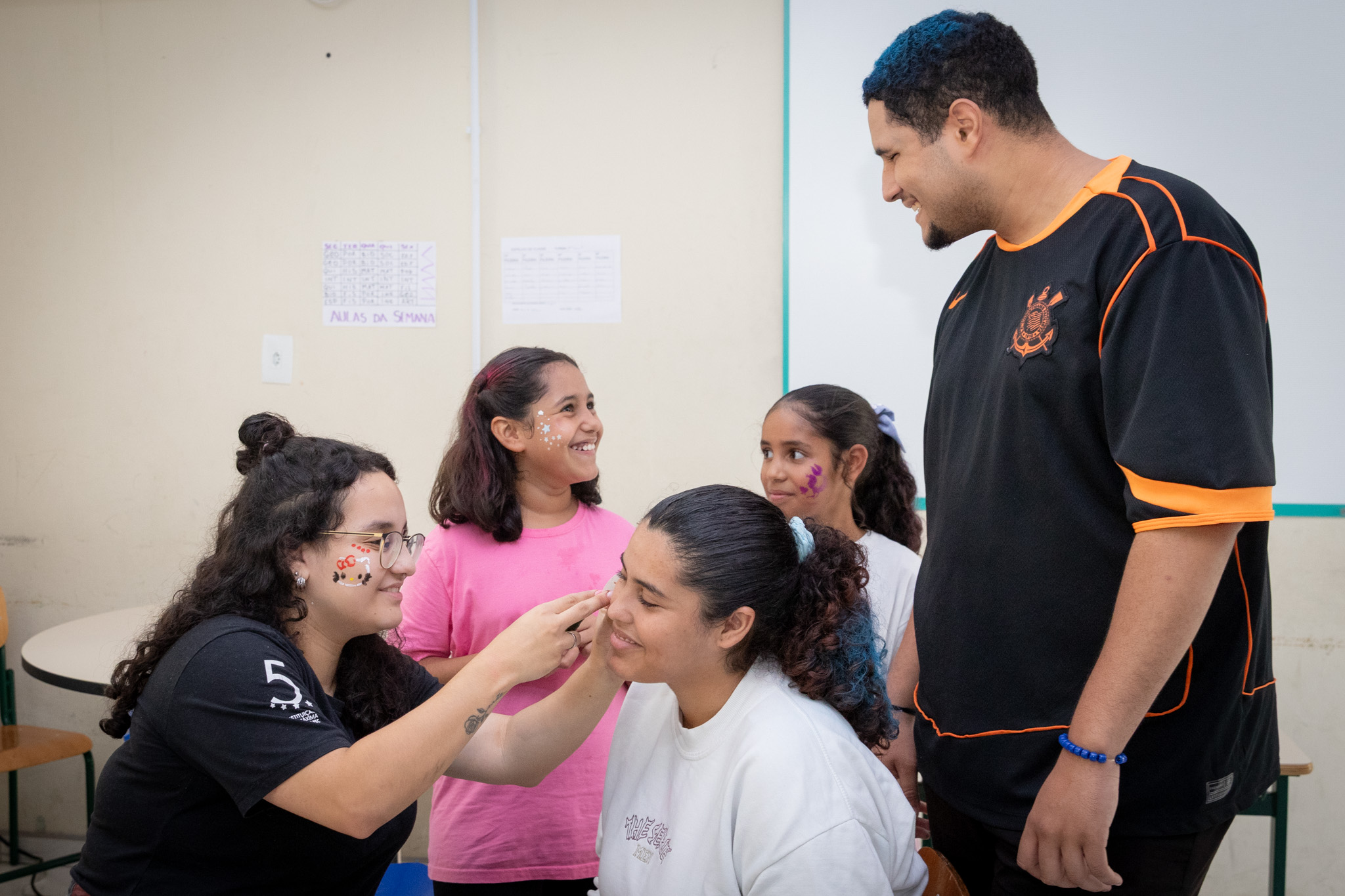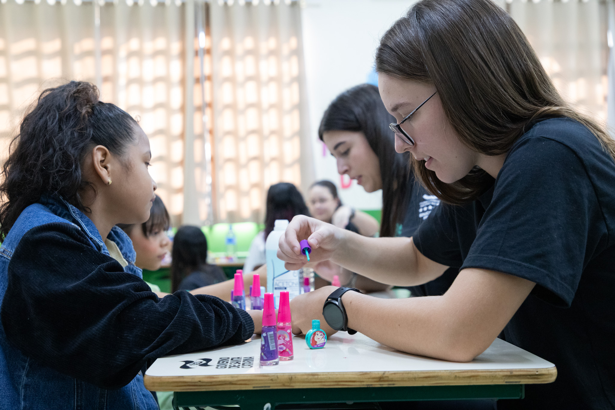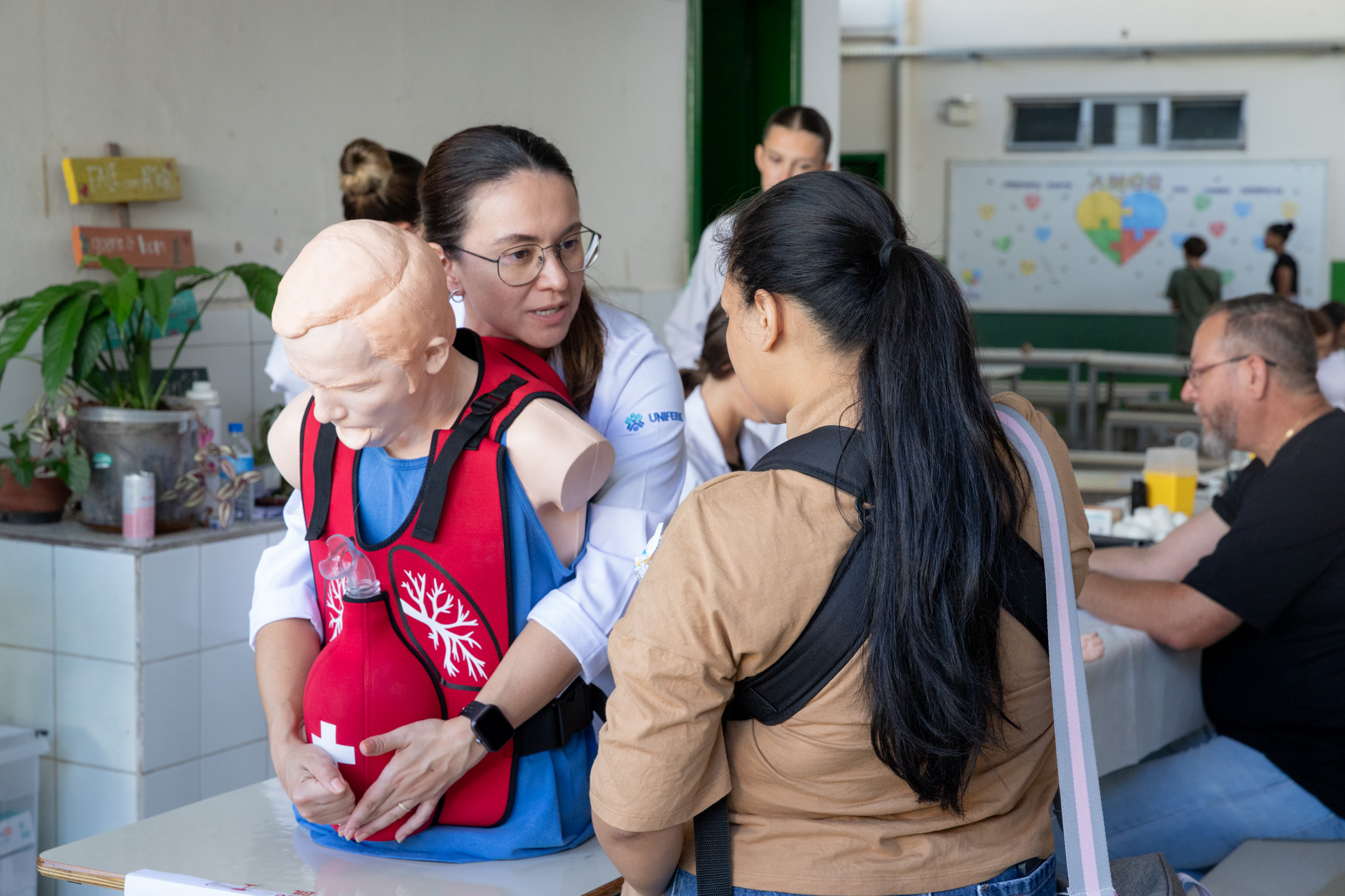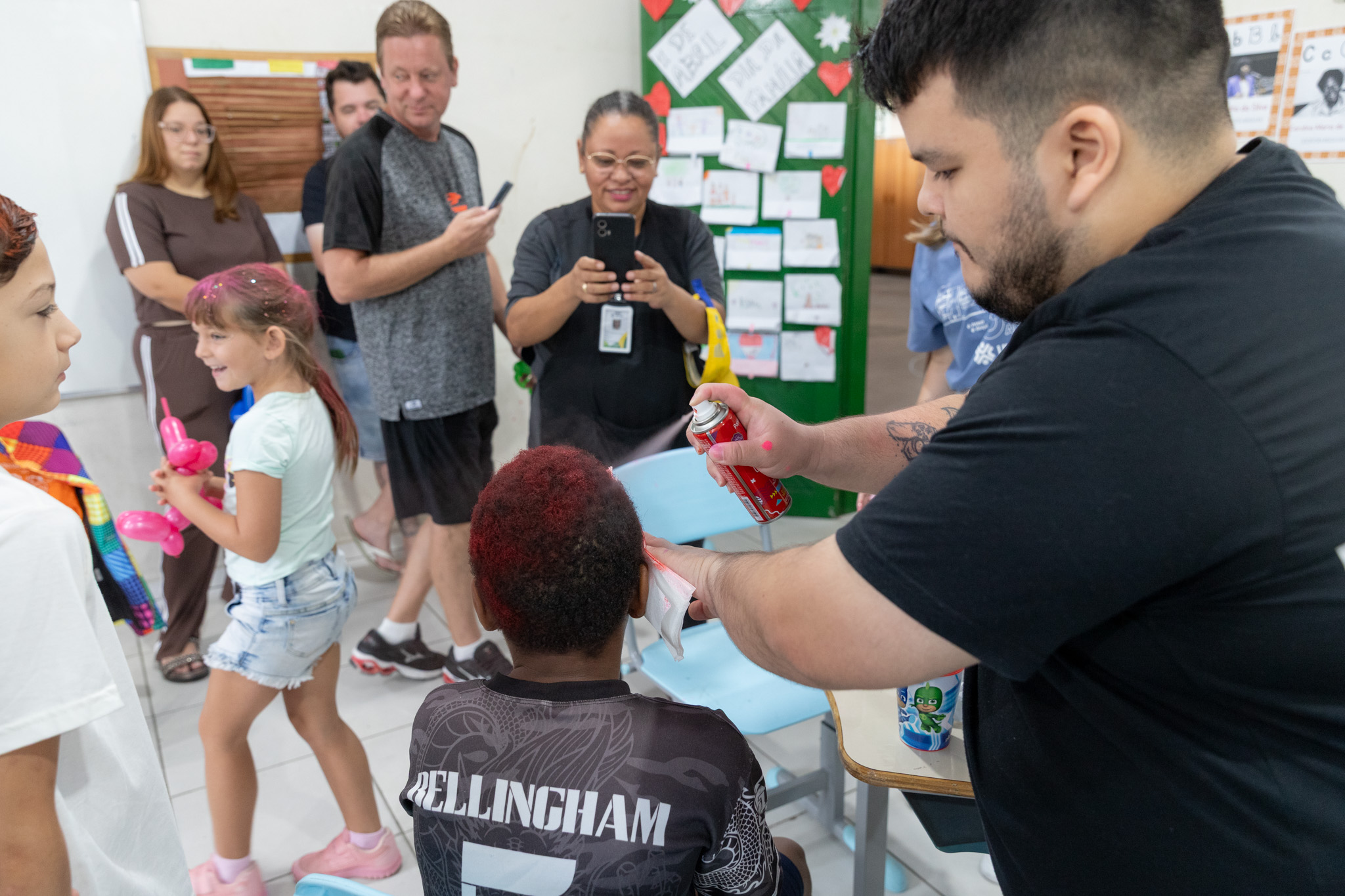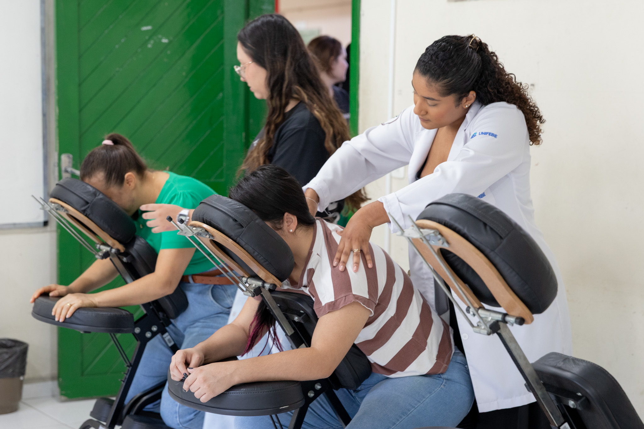 As atividades incluíam aferição de pressão arterial e glicemia, massagens rápidas, testes físicos, orientações de saúde e oficinas recreativas, além de balões, pintura de rosto e de cabelos. Em nível estadual, o evento é organizado pela Secretaria de Educação para promover a convivência entre alunos e familiares no ambiente escolar.