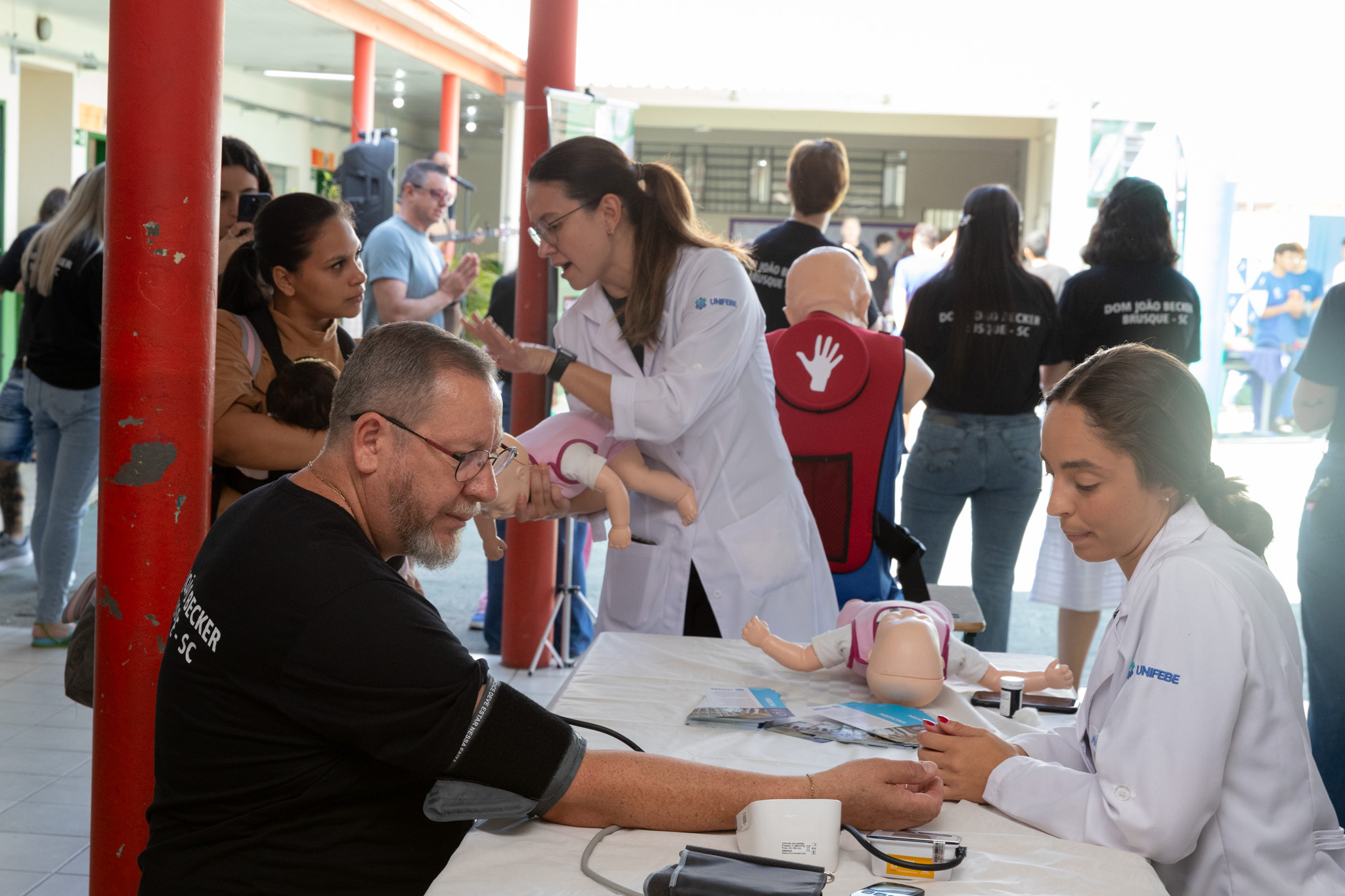 A UNIFEBE passou a manhã deste sábado (11) ao lado da comunidade durante o Dia da Família na Escola. Acadêmicos, professores e funcionários da instituição organizaram ações de saúde e lazer em 10 escolas de Brusque, Gaspar e Botuverá.