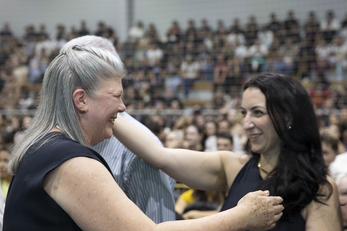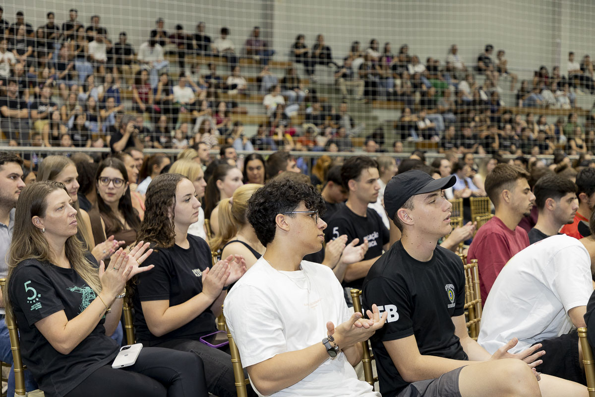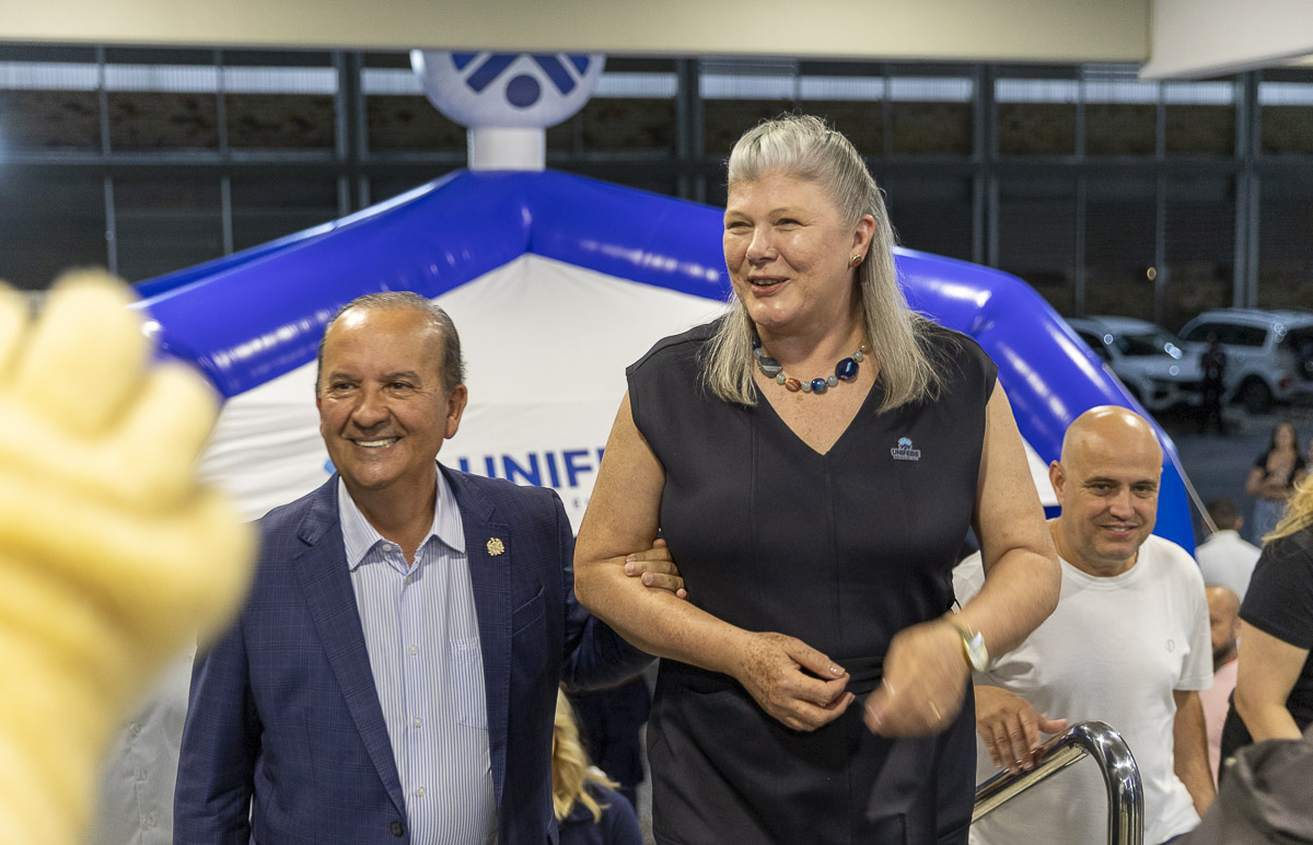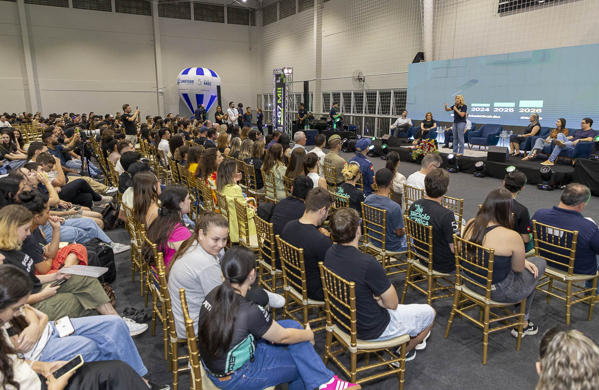 A reitora da UNIFEBE, professora Rosemari Glatz, destaca o momento vivido pelo centro universitário e a importância dos trabalhos de contrapartida. “É uma noite especial, um momento de mostrar o que tem sido o Programa Universidade Gratuita. Um pouco dos números e da quantidade de alunos que têm sido atendidos desde 2023, no início do programa. E também um pouco dos alunos que estão fazendo a contrapartida.”